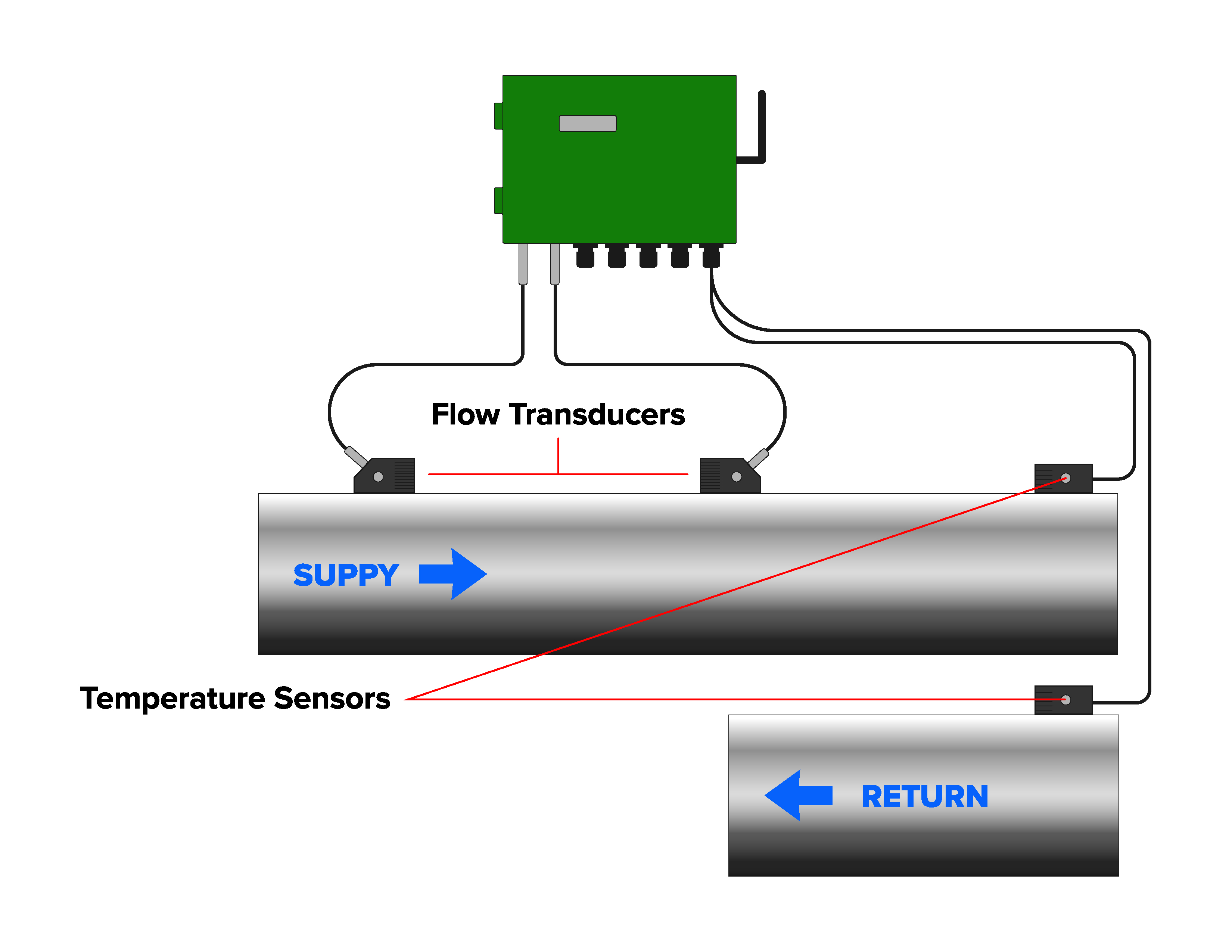 Figure 5. Clamp-on ultrasonic liquid flow meter with thermal energy/BTU capability